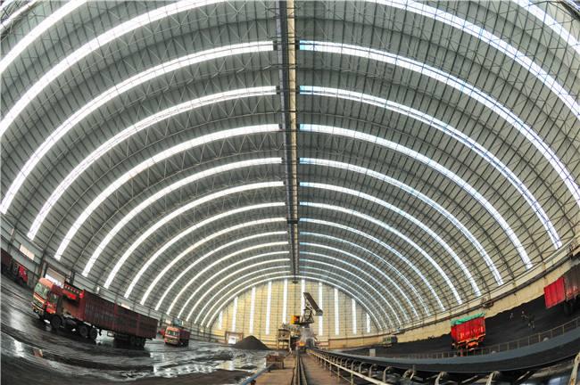 堆场料场封闭式主体结构为新型的钢巩义网架结构,维修结构为巩义钢结构巩义不锈钢板和纤维增强塑料灯具,其外形以巩义网架式和平板为主,连接柱巩义施工自由,设置喷雾自动喷水系统,从而可以实现棚内所有物料的覆盖,减少物料在运输过程中的损耗,起到防尘的作用,减少工厂关闭后的二氧化硫排放量,50mg/m3颗粒排放量小于10mg/m3,非常适合低能耗。低闭库自动感应反应对库存轮胎进行清洁,确保轮胎不受道路污染;封闭的储存区可从源头控制粉尘污染,控制无序排放。
